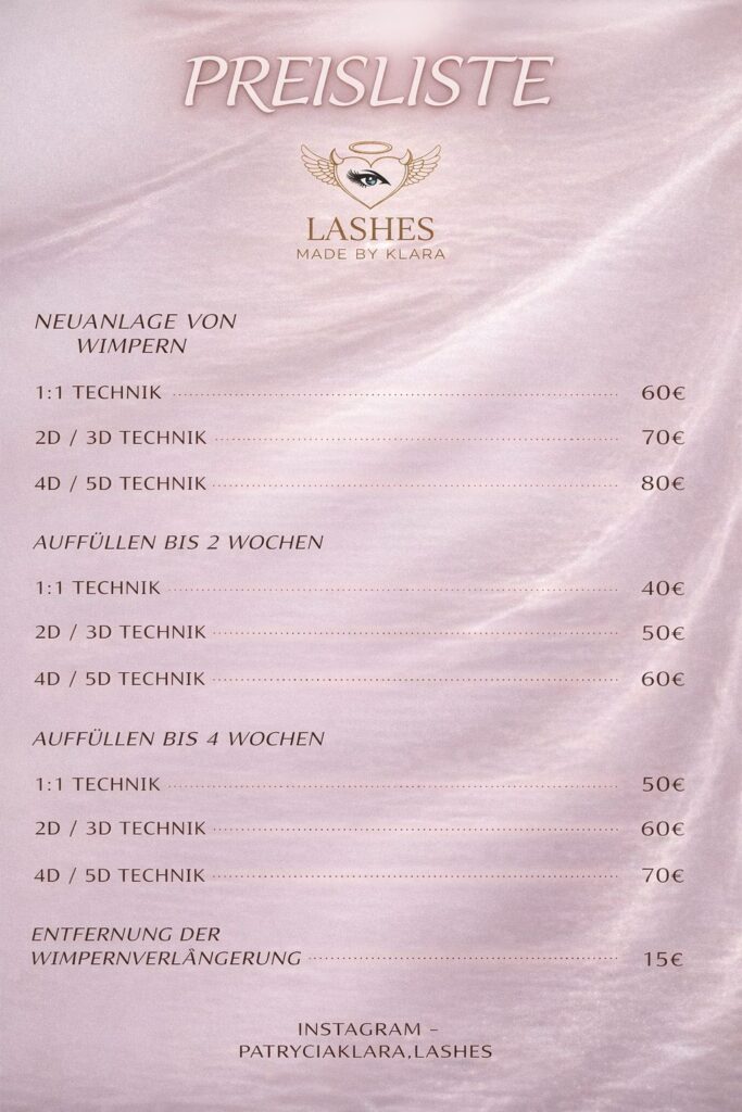 Mein Name ist Patrycja Klara und ich bin zertifizierte polnische Wimpernstylistin.